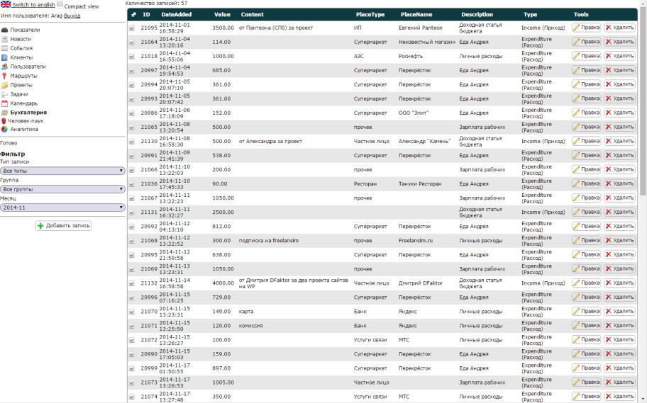 Создана для внутреннего использования в нашей компании с целью систематизации и визуализации процесса работы с проектами, задачами и бухгалтерией, а также анализа деятельности.